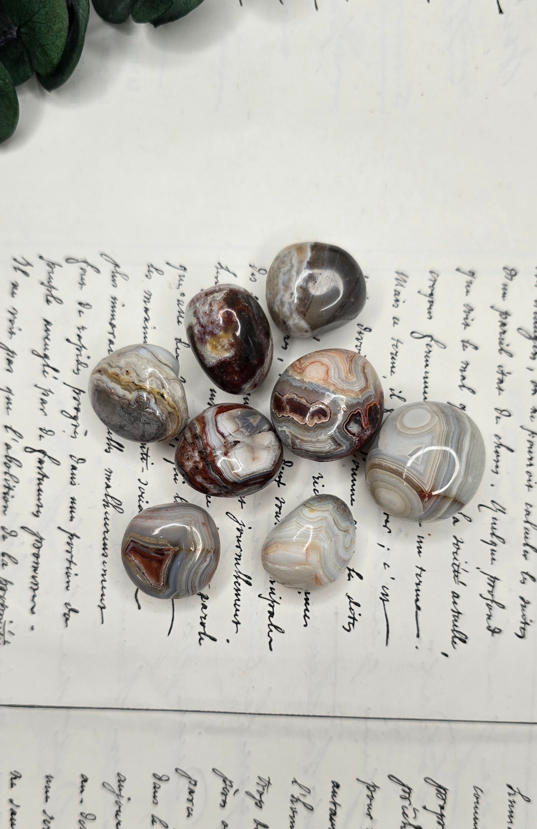 Surnommée "le rire de la terre", l'Agate Crazy Lace Rouge est célèbre pour ses motifs complexes et ses entrelacs fascinants. Originaire des régions volcaniques du Mexique, cette variété d'agate se distingue par ses couches festonnées qui créent un véritable spectacle visuel naturel.