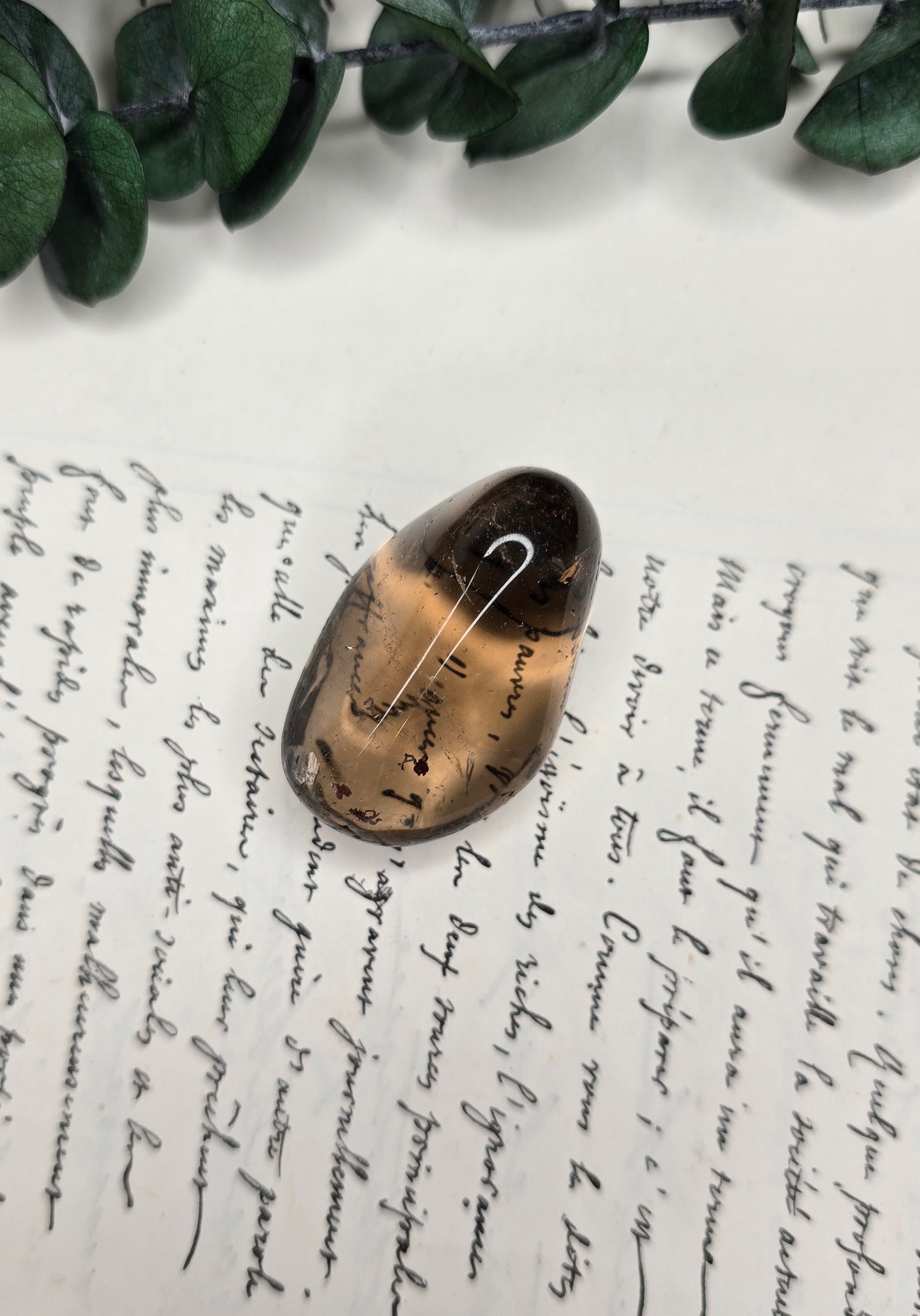 Grâce à sa qualité AA, ce cristal de 34 grammes présente une clarté exceptionnelle. Sa structure interne laisse passer la lumière tout en révélant la profondeur de ses teintes tabac et charbon, caractéristiques des plus beaux quartz fumés naturels.