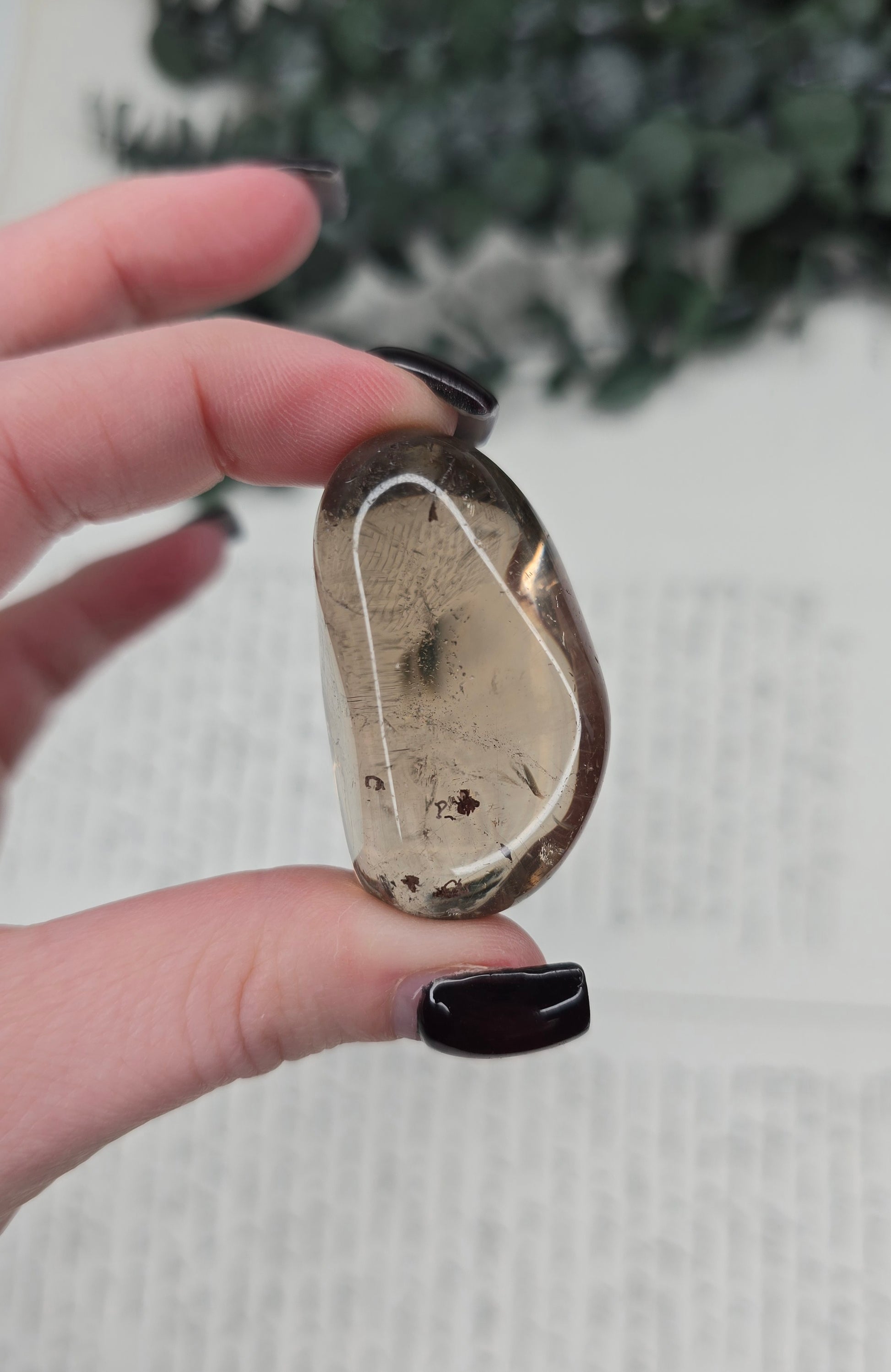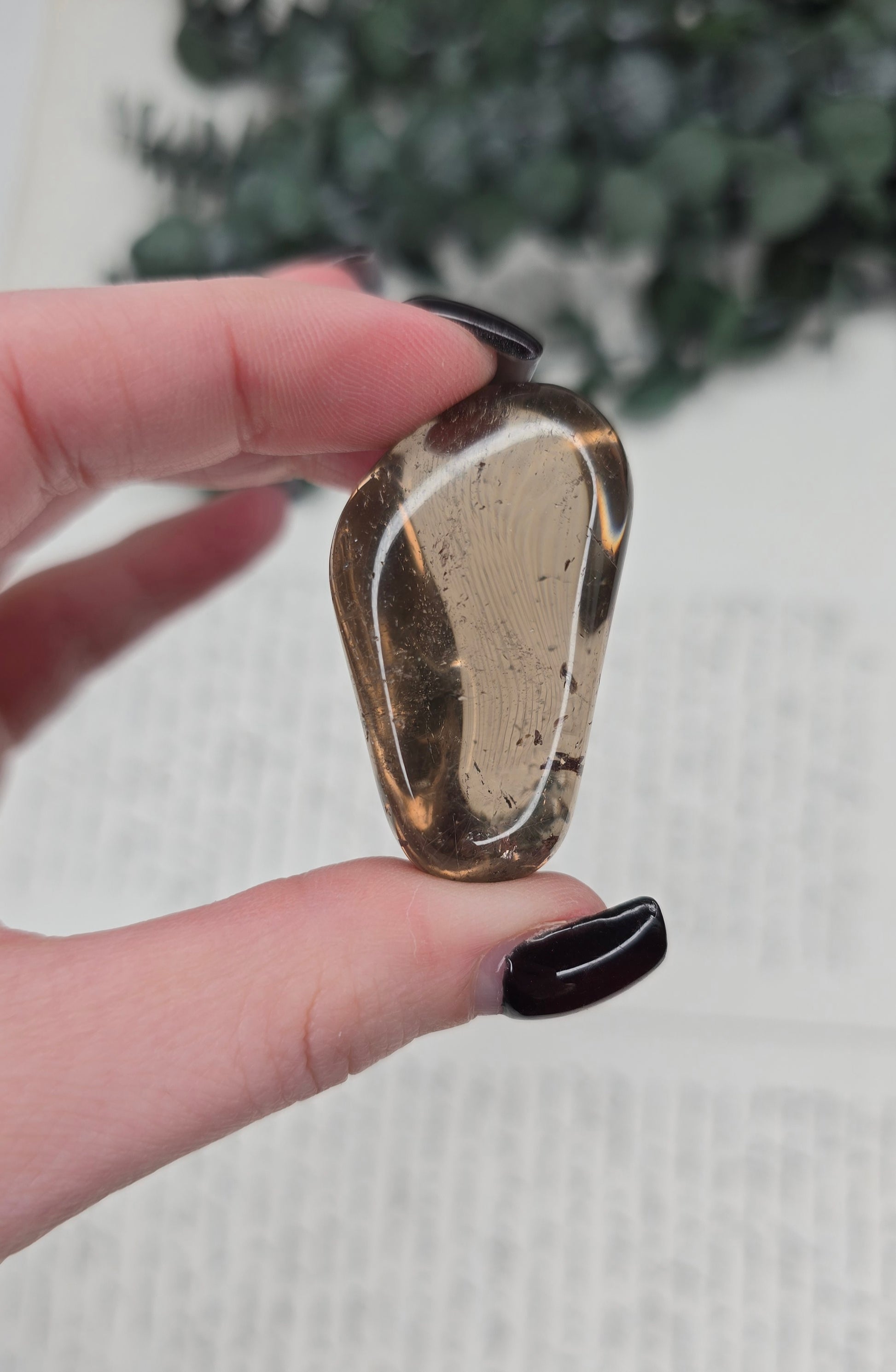 Apportez une touche de sophistication naturelle à votre collection avec ce Quartz Fumé poli, originaire des célèbres gisements du Brésil. Ce spécimen se distingue par sa silhouette organique et sa transparence fumée, offrant un dégradé de brun nuancé d'une grande finesse.