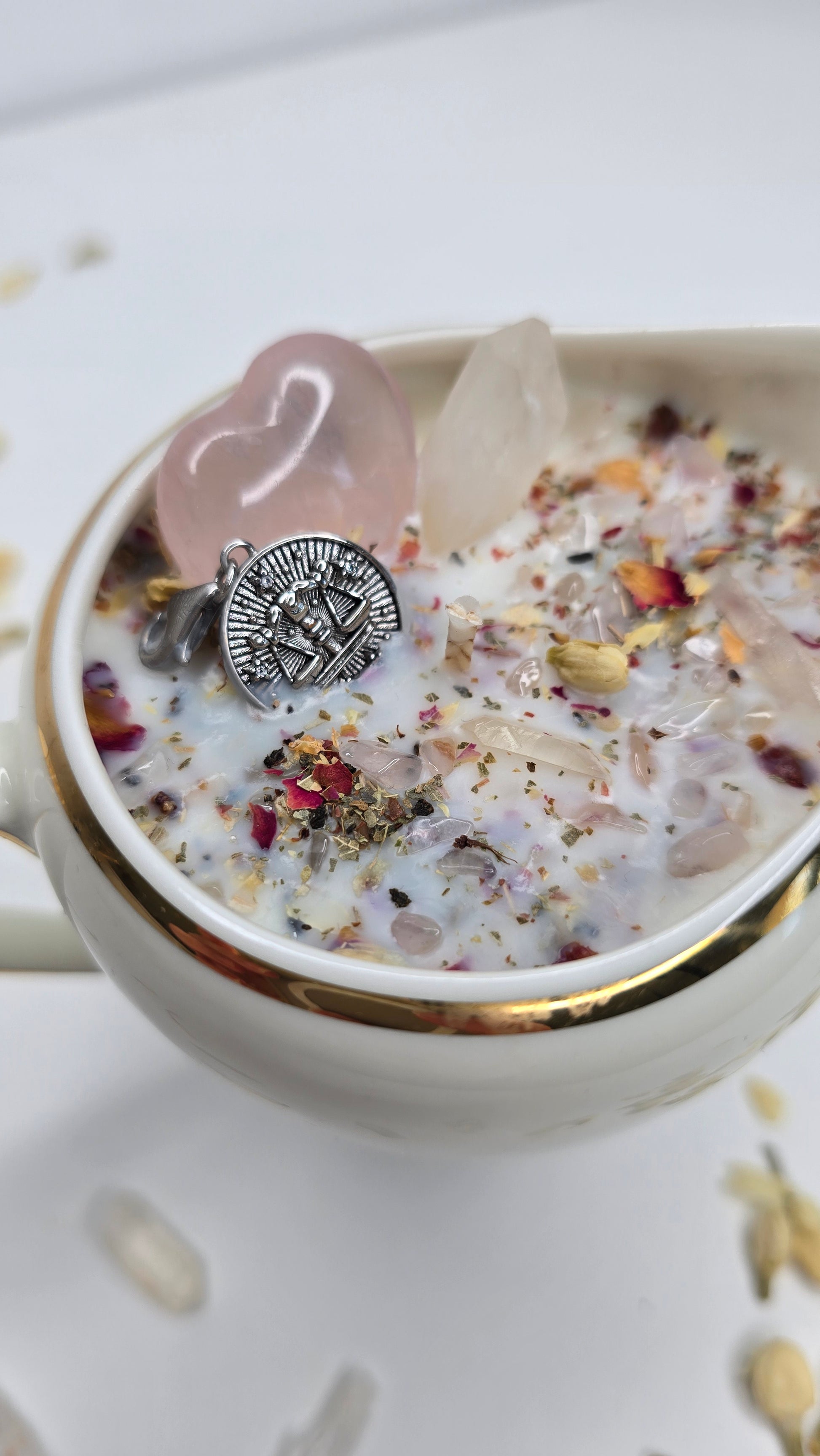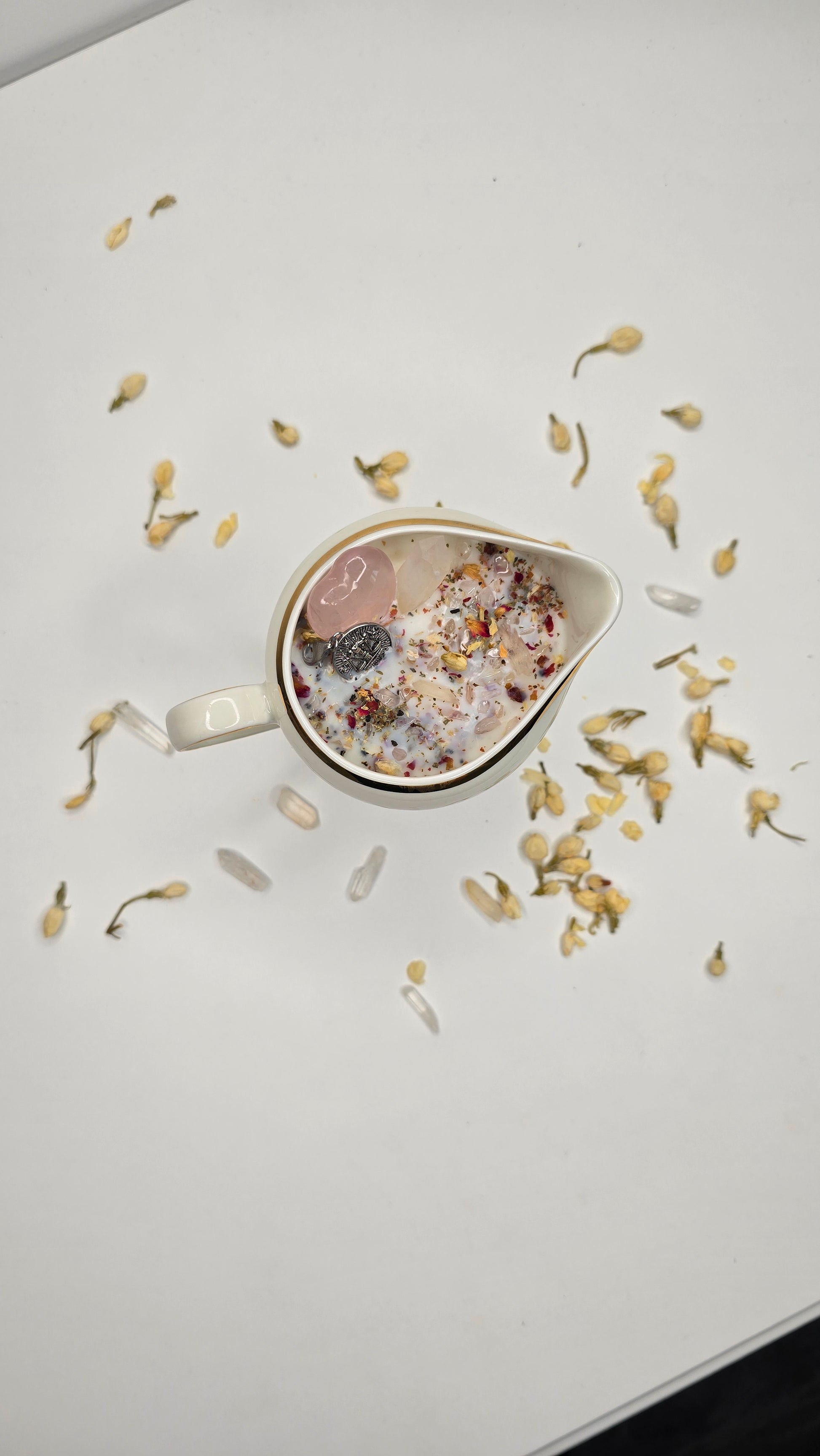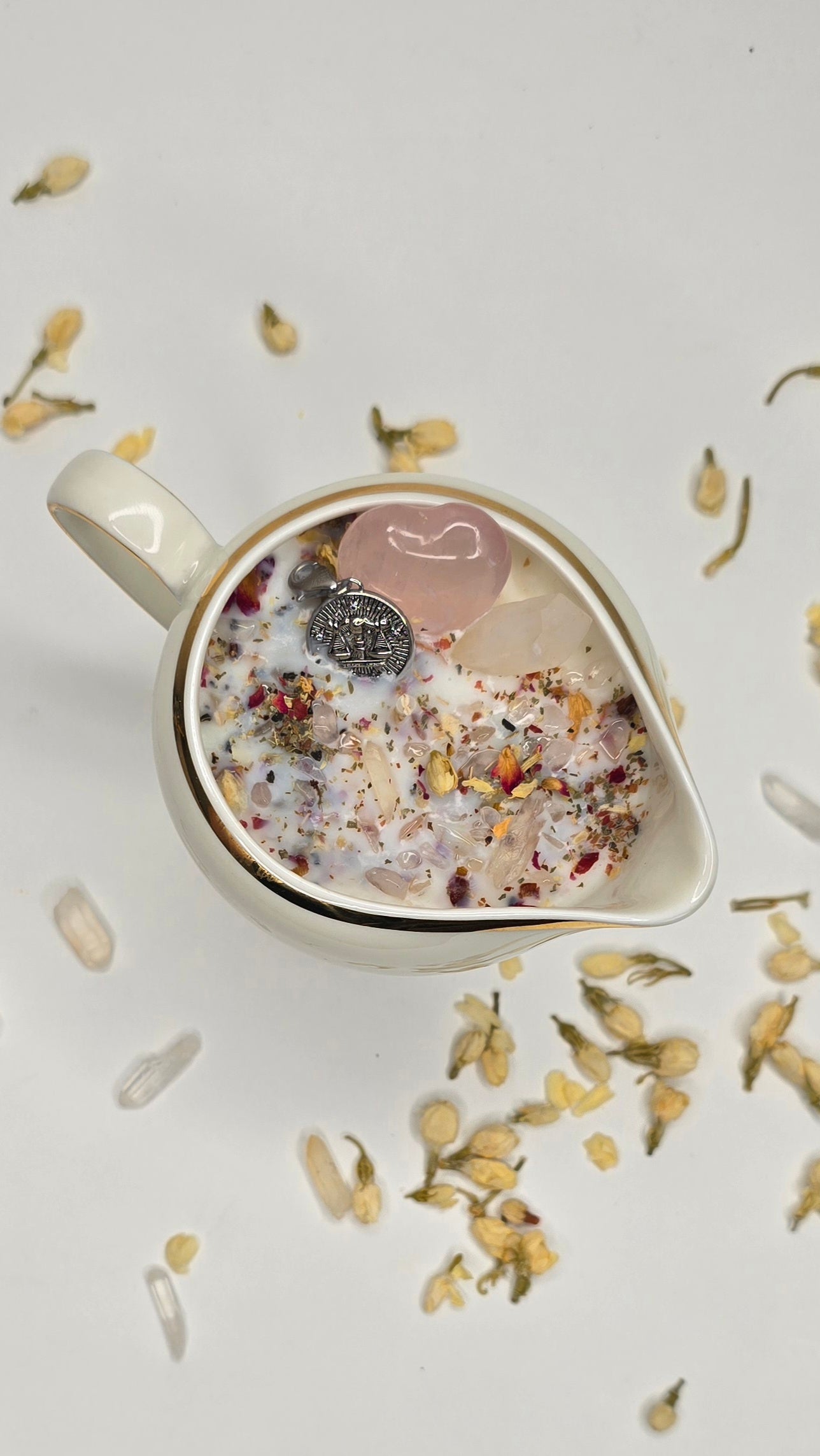 Nichée dans sa porcelaine immaculée aux liserés dorés, cette création est le miroir de votre tempérament. Le bec verseur évoque ce geste de partage, cette manière que vous avez de diffuser l'harmonie autour de vous. Au centre, ce cœur de Quartz Rose n'est pas là par hasard : il est l'ancrage de votre bienveillance. Une pièce unique, façonnée pour celle qui sait que l'élégance est avant tout une question d'équilibre intérieur."