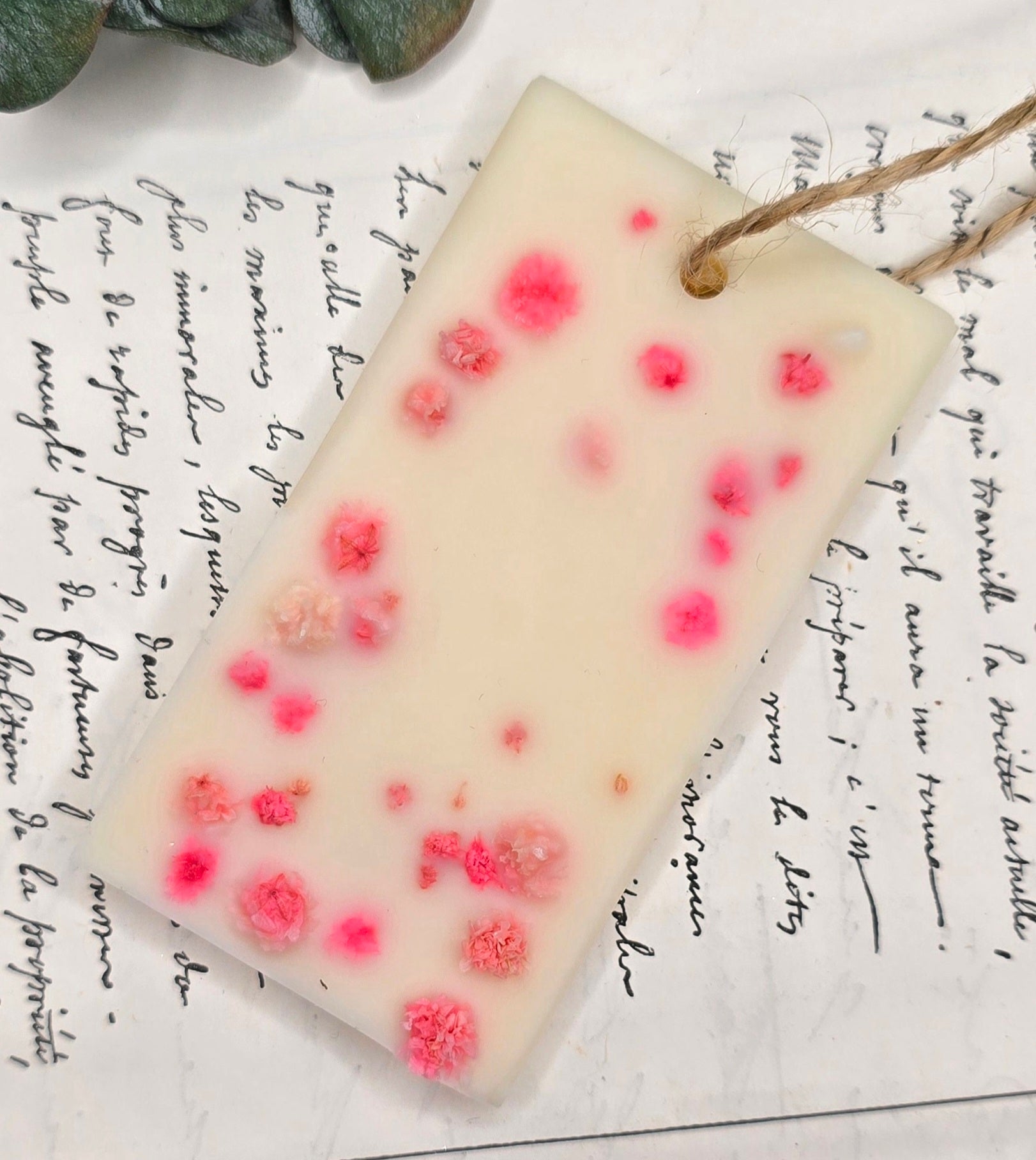 Une création artisanale pensée pour harmoniser votre intérieur. Cette suspension diffuse naturellement ses notes douces et poudrées dans vos petits espaces (penderies, tiroirs, bureau).