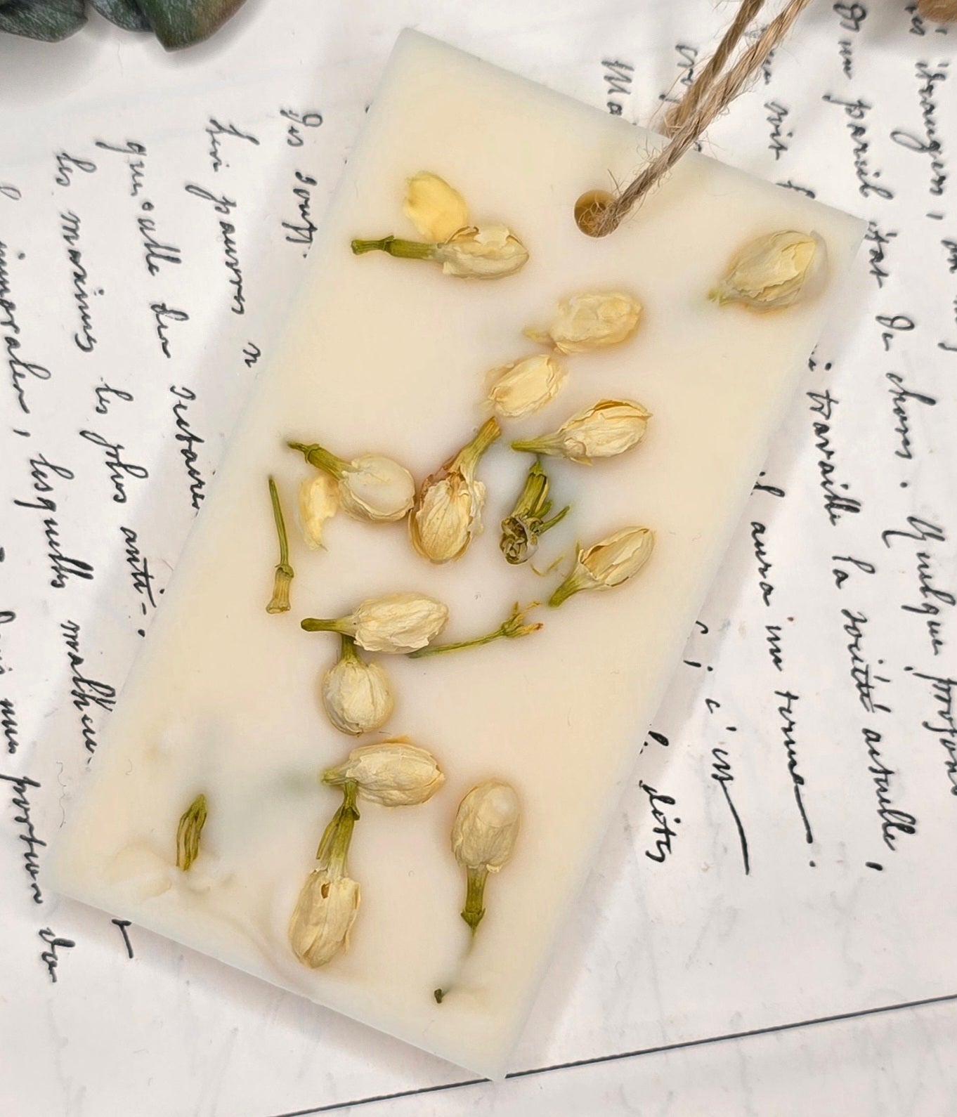 Une création artisanale pensée pour harmoniser votre intérieur. Cette suspension diffuse naturellement ses notes douces et poudrées dans vos petits espaces (penderies, tiroirs, bureau).